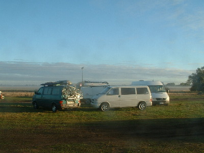 Unsere Wagenburg dort in Licht der Morgensonne :)